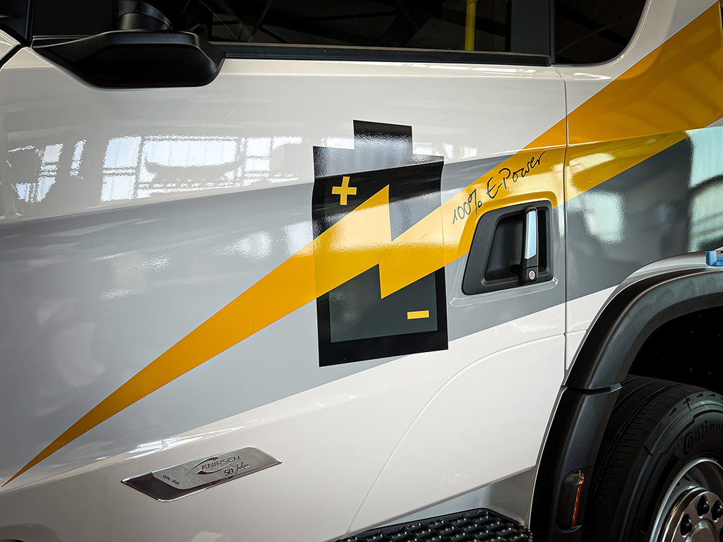 Bei dem BEV (Battery Electric Vehicle) handelt es sich um einen Scania 25L in der stärksten Ausführung mit 230 kW-Antriebsstrang und einem zulässigen Gesamtgewicht von 26 Tonnen. Der E-Truck stammt aus der ersten voll elektrischen Baureihe des schwedischen Nutzfahrzeugherstellers. Mit seinem Elektroantrieb und dem L-Fahrerhaus mit niedriger Einstiegshöhe ist der Neuzugang bestens auf Transportaufgaben im innerstädtischen und regionalen Verkehr vorbereitet.