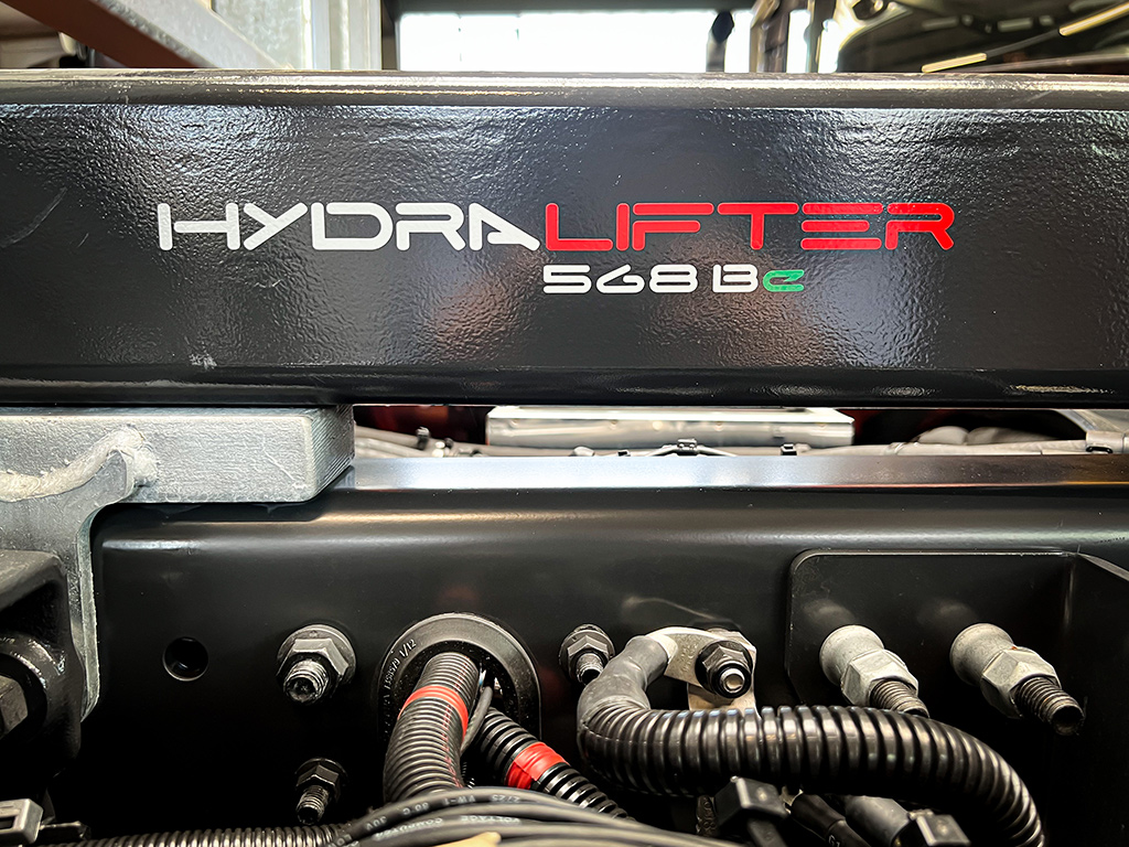 Weitere Besonderheit neben dem markanten Wolfmüller-Design des Fahrerhauses ist der Aufbau der Firma Göbel Fahrzeugbau aus Aschaffenburg. „Bei solchen Brückenumsetzfahrzeugen läuft alles automatisch ab, so dass der Fahrer für den Brückenwechsel nicht mehr aussteigen muss“, fasst Timo Grahm, Inhaber und Geschäftsführer von Wolfmüller, die Vorteile des maßgeschneiderten Aufbaus mit Hydra-Lifter zusammen.