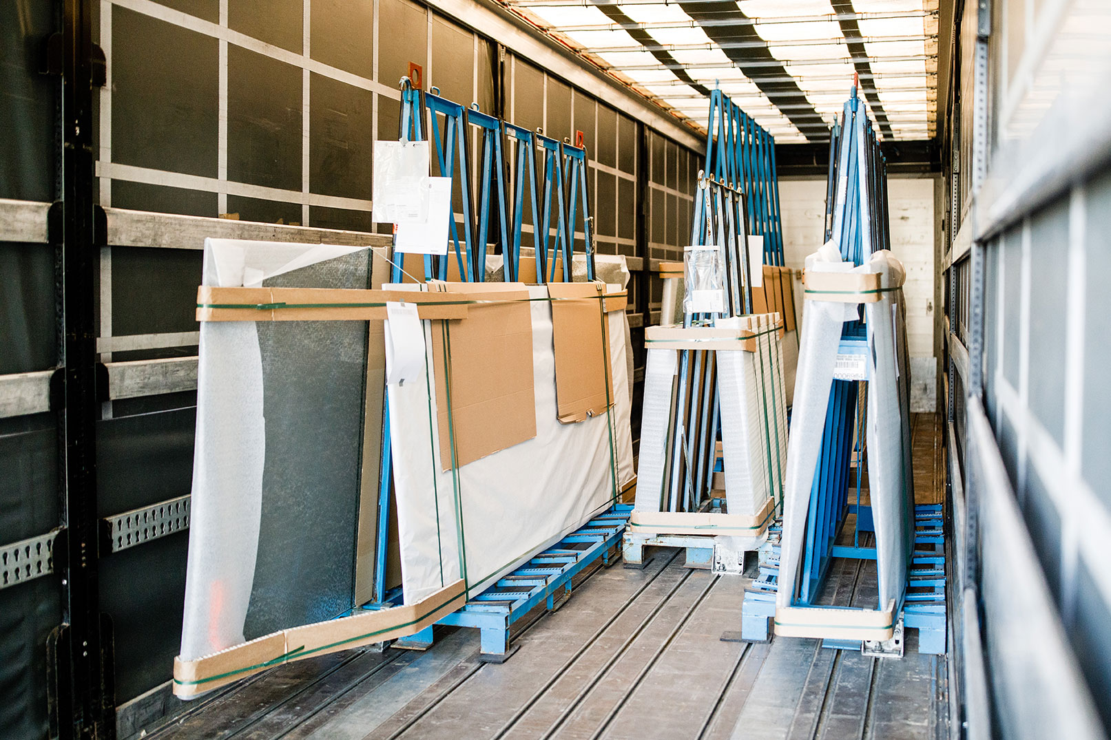 Wir haben den Anspruch, Ihre Fracht schnell und sicher ans Ziel zu bringen. Zerbrechliche Güter wie große Fensterscheiben transportieren wir deshalb mit unseren Megasatteln, die zusätzlich mit innovativen Modulasi Ladungssicherungssystemen ausgerüstet sind. Damit haben wir bereits vor Jahren große Glaselemente der Berliner Reichstagskuppel ohne Kratzer an ihren Bestimmungsort gebracht.
